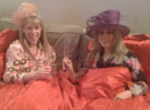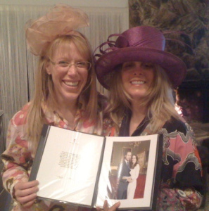 In our wedding worthy hats and bedtime finery, Julie and I too celebrated the marriage of Prince William and Kate. We camped out in front of the big screen and watched the festivities live celebrating with champagne, scones and sweet treats along with the other estimated 3 billion people throughout the world. We made it from midnight until five in the morning; then we crashed.