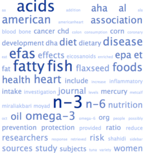 Most unsaturated fat in the human diet comes from EFA or Essential Fatty Acids. There are two important EFAs,  alpha-linolenic acid (omega-3) and linoleic acid (omega-6); the body can not produce these.  Omega-3 and omega-6 fatty acids most be obtained from the foods that we eat. They also serve as a positive influence on health issues such as: Immune Response, Heart Protection, Cancer, and Osteoporosis. All of these topics and more about omega-3 and omega-6 fatty acids are addressed in Understanding The Role of Omega-3 & Omega-6 Fatty Acids. Other useful information can be found at the The American Heart Association and WebMD. There is a nice slide presentation on The Truth About Omega-3, the Good Fat that is worth reviewing.