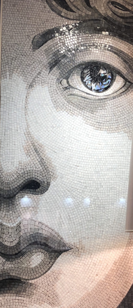 Inspired by a photo that I took of an artistic mosaic piece made with millions of metallic tiles in the window of a decorator shop while strolling the streets of Paris the evening of January 1, 2018. It is unfortunate that I do not have a record of the name or the address of the shop. Je suis trés, trés  désolé!