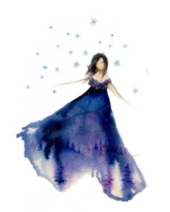 I was delighted for the introduction to a new artist and to have one of her pieces in my collection. Her love of nature, in this case trees, is a catalyst for her creations coupled with one of her techniques – acrylic ink on watercolor paper. According to Cuttell, the technique enables a richness and vibrance in the colors which is evident in both Lady Aspen and Silent Night.